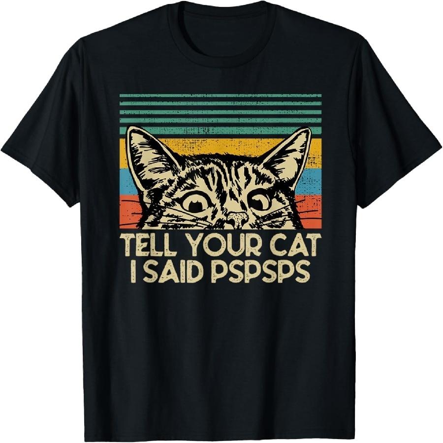 HUYTEDX Funny Cat Retro Tell Your Cat I Said Pspsps Retro T-Shirt