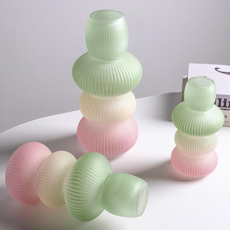 Glass Vase Pebble Geometric Striped Gradient Colored Flowerpot Flower Vase Terrarium Home Decoration Accessories