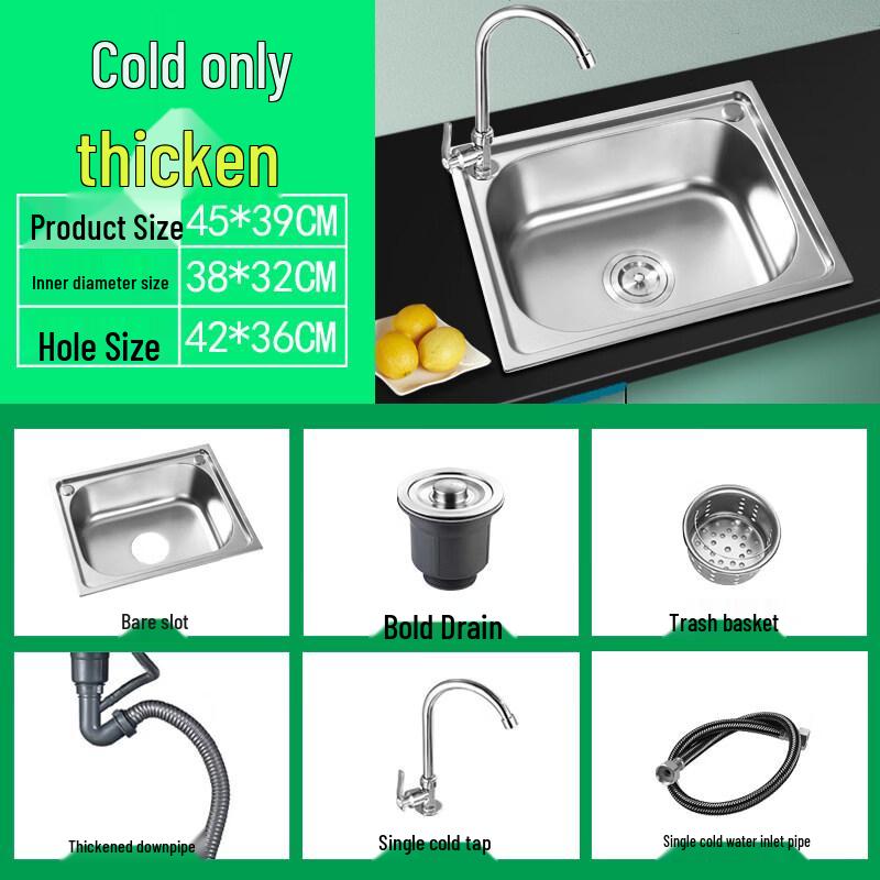 Upgraded Thickened 304 Stainless Steel Single Bowl Kitchen Sink