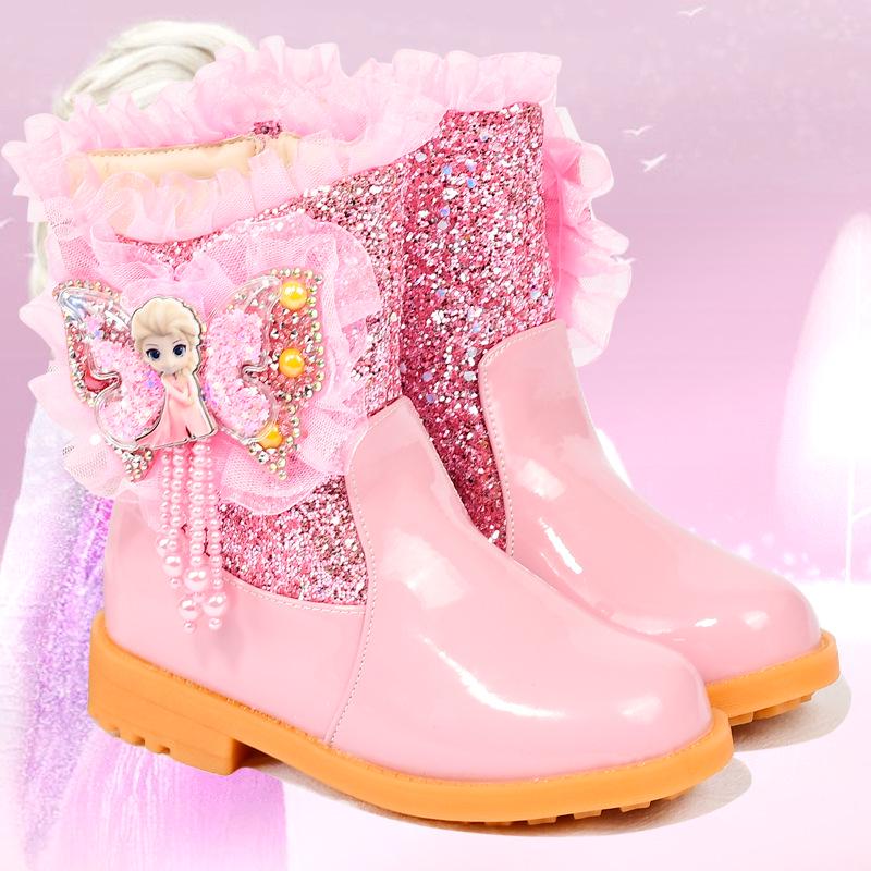 Girls' Elsa Princess Fleece Boots - Warm Winter/Autumn Martin Soft Sole Snow Boots