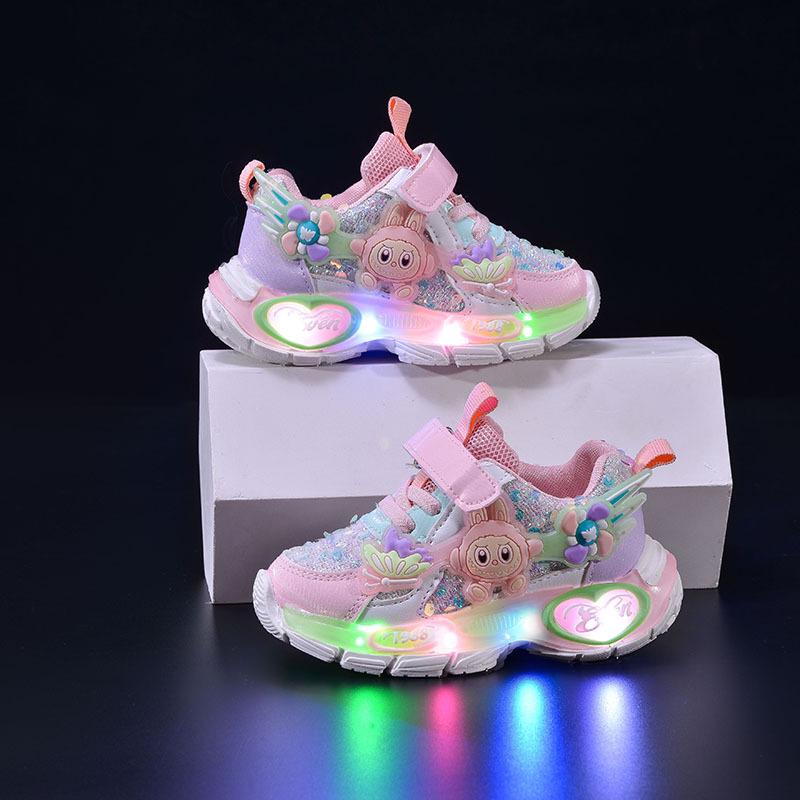 Glowing 2025 Spring/Autumn Light-Up Velcro Sports Shoes for Girls - Cartoon Design and Running Comfort