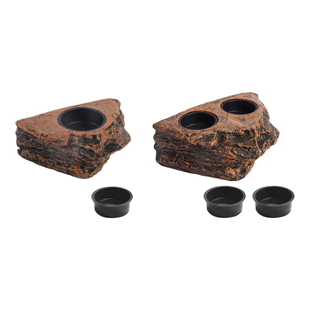 Reptile Feeding Tray, Faux Rock, Versatile Food and Water Bowl, Ledge for Gecko,