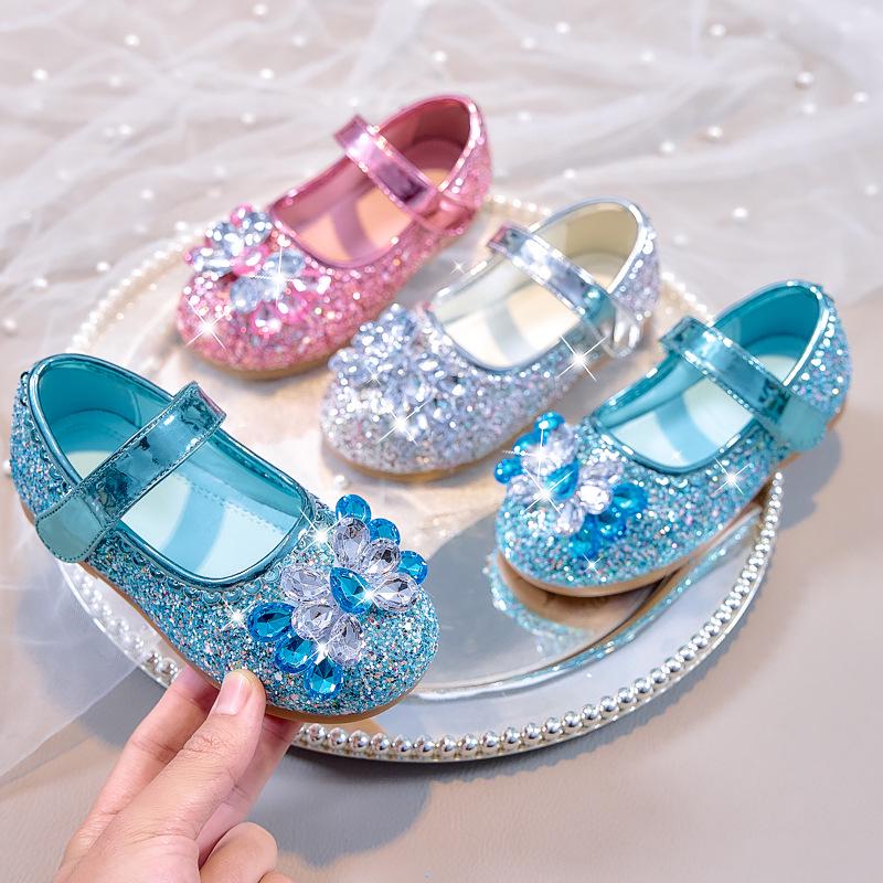 Korean Style Girls' Leather Rhinestone Princess Shoes - 2025 Spring/Autumn Soft Sole Fashion Flats