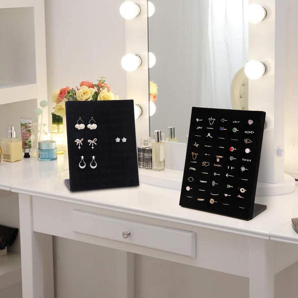 Jewelry Display Stand Ring Display 50 Slots L-Shaped Organizer for Wedding Entryway Home Bathroom Dressing Table Store Counter