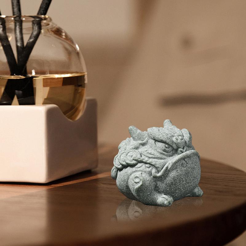 Sand Color Tea Pet Chinese Style Ancient Animal Statue Green Sand Color Mini Tea Pet Figurine Handcrafted Table Centerpiece Tea