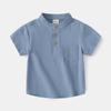 Boys' Summer Short-sleeved V-neck Shirt Middle and Small Children Solid Color Casual Tops