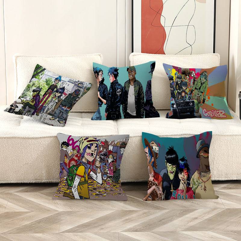 Retro Music Gorillaz Good Quality Anime Office Cushion Pillowcase Car Cushion Cover45X45CM Lumbar Pillowcase Sofa Pillowcover