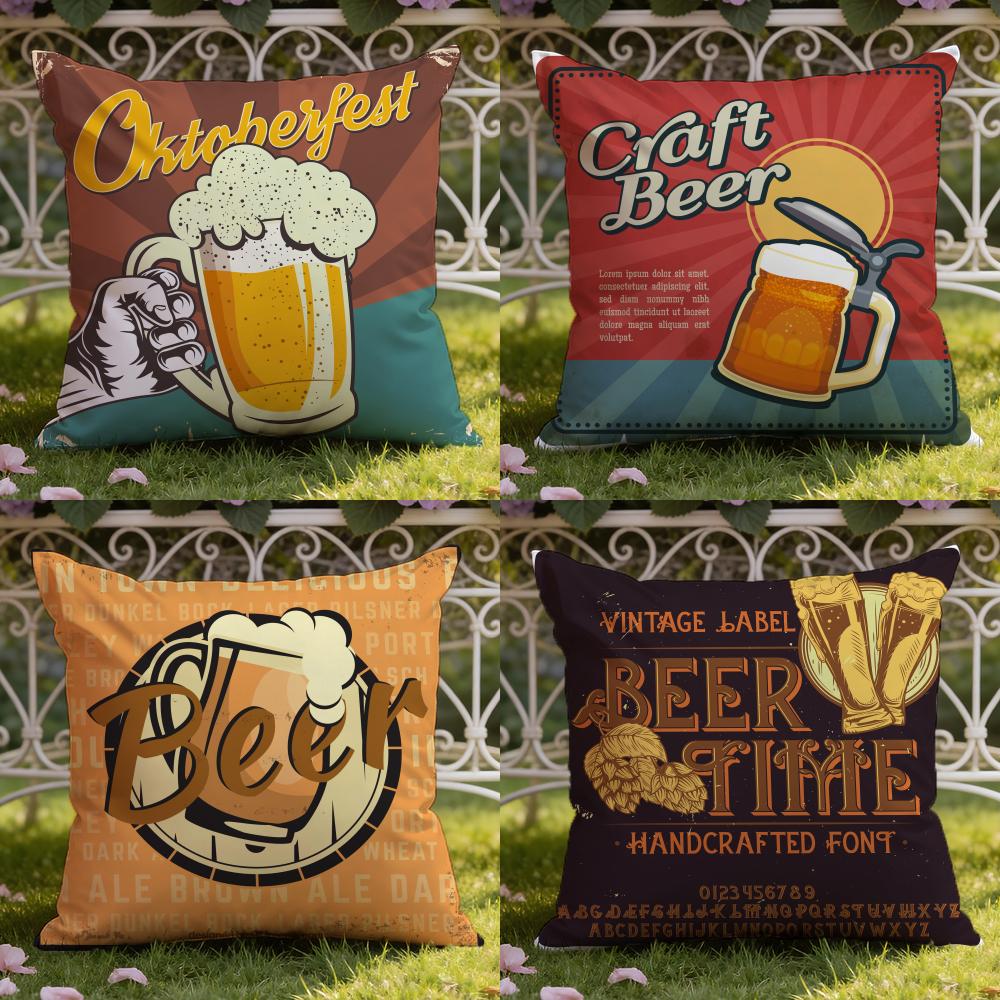 Beer Wine Retro Style Cushion Cover Home & Car Dual-Scene Pillow Cover: Reversible for Premium Comfort