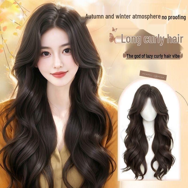 Women's Full-Cover Long Curly Wig - Soft Big Waves, Tieable and Loose, Natural Fluff To Increase Volume