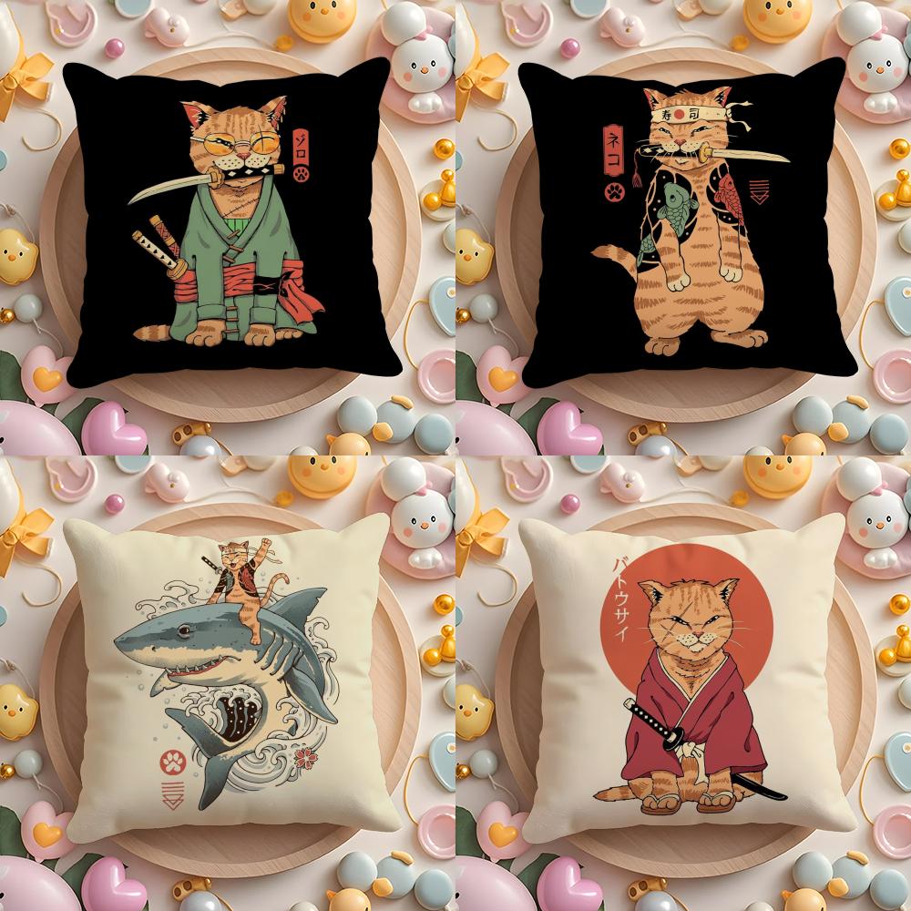 Japanese Style Cat Cushion Cover Home & Car Multi-Scene Pillow Cover - Reversible, Soft & Durable for Daily Use