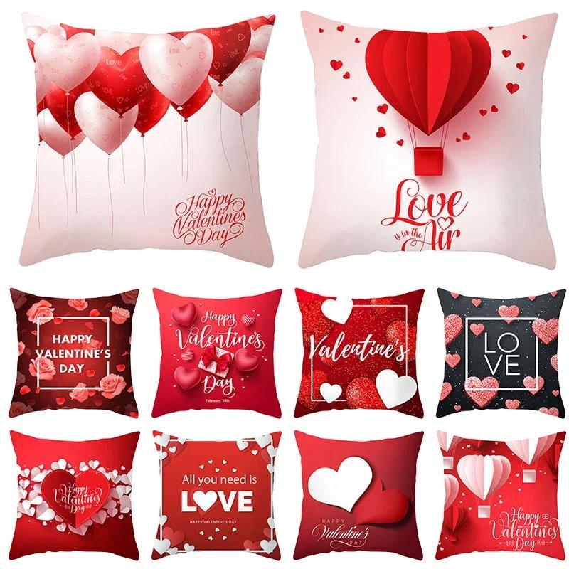 Valentine's Day Cushion Cover Red Heart Print Pillowcase Sofa