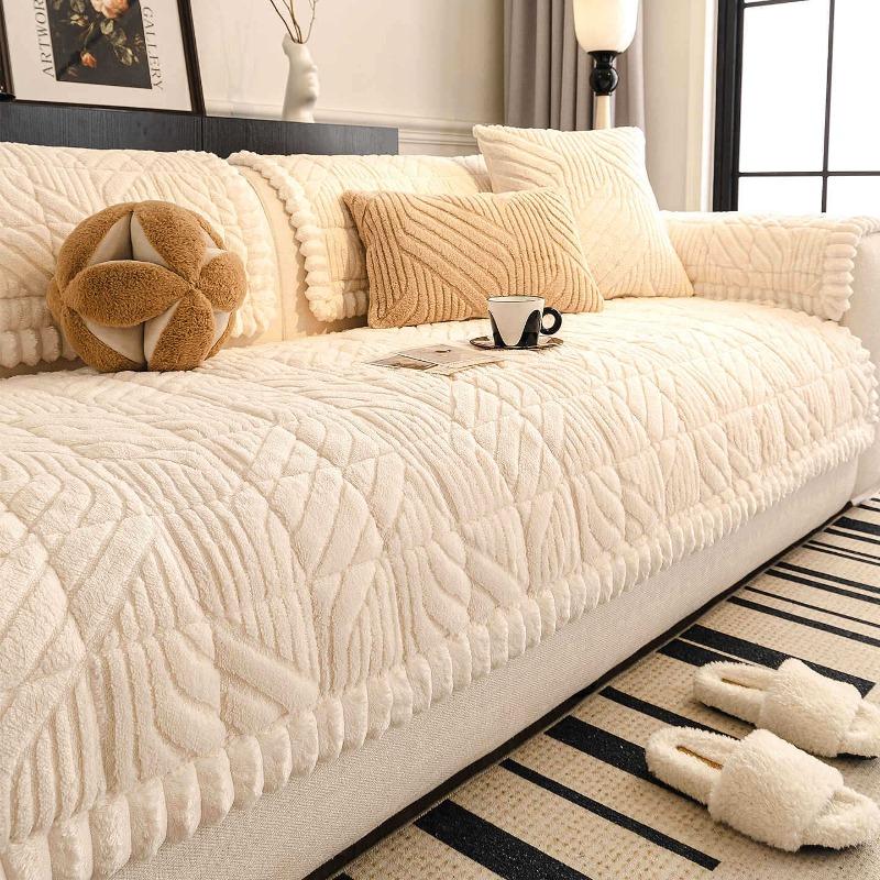 Thickened Sofa Cover Fabric Plush New Anti Slip and Cat Scratch Milk Oil Style Sofa Cushion Cover for Autumn and Winter Seasons