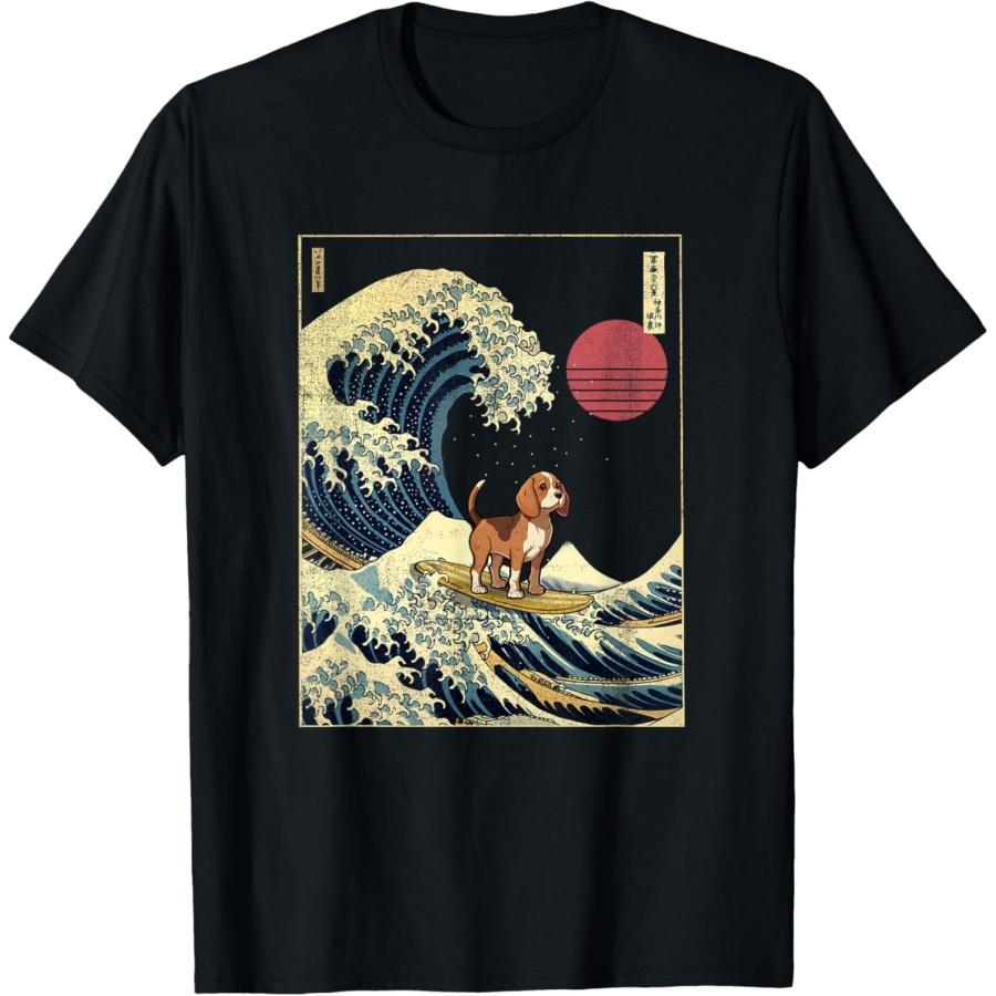 Beagle Japanese Kanagawa Wave Funny Surf Dog T-Shirt