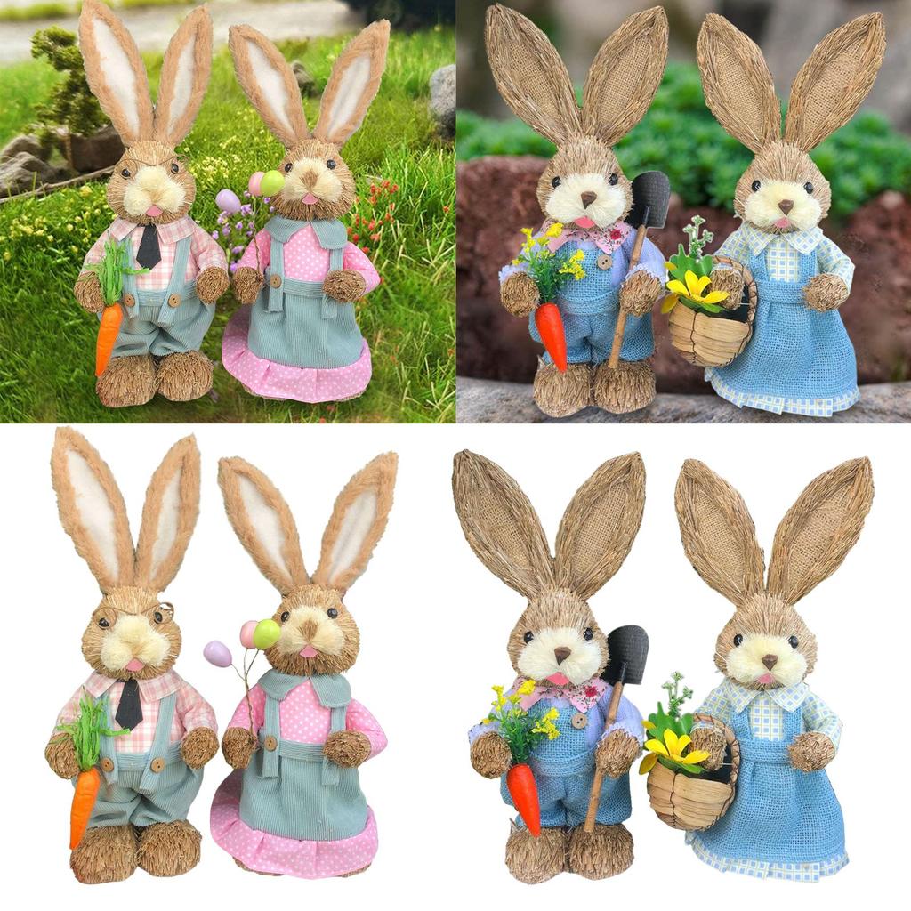 1 Pair Straw Woven Bunny Figurine Easter Sculpture Easter Theme Party Supplies Desktop Garden Party Favors Doll Ornament