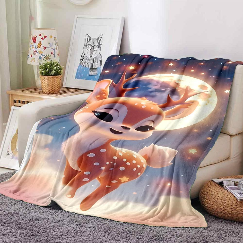 1pc Deer Name Blanket Lightweight Flannel Throw for Sofa Bed Travel Camping Livingroom Office Couch Chair