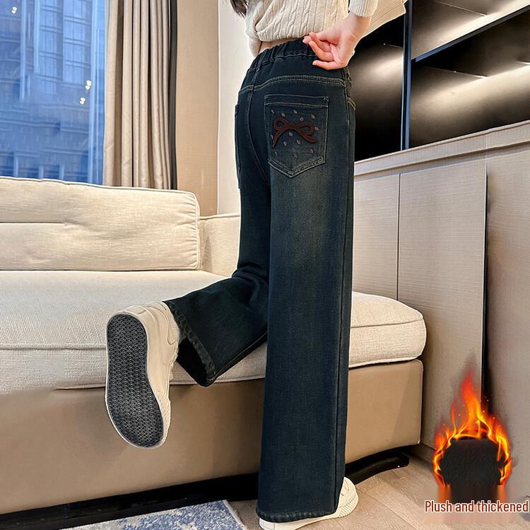 Girls' Plush Velvet Wide-Leg Jeans - Autumn/Winter 2025 Collection