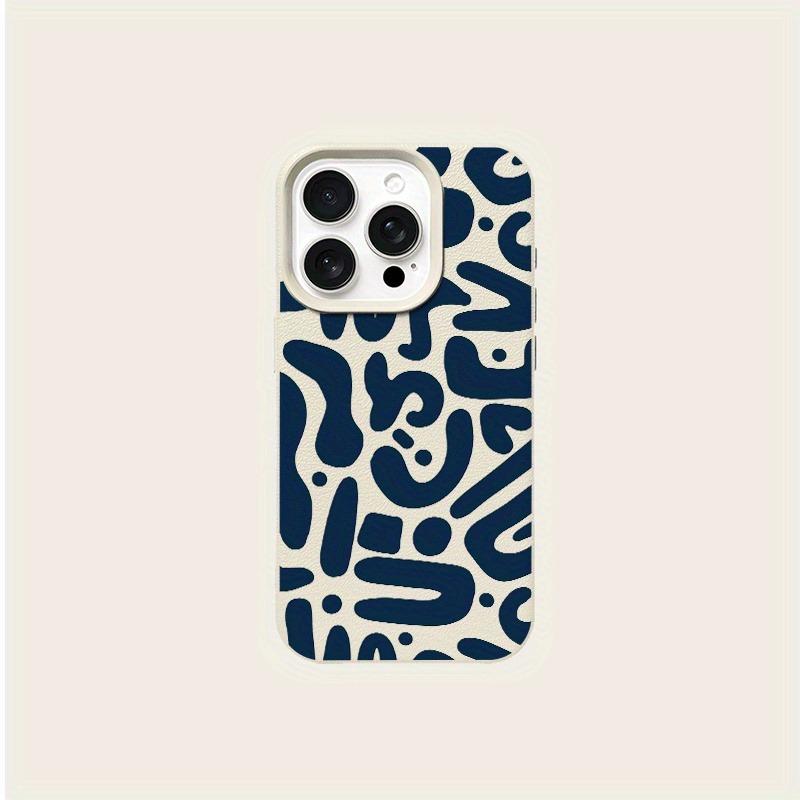 Vintage Blue Striped Print Lychee Texture Phone Case, Suitable for iPhone 17, 16, 15, Plus, Pro, Max Series Phones - Ideal for Gifting
