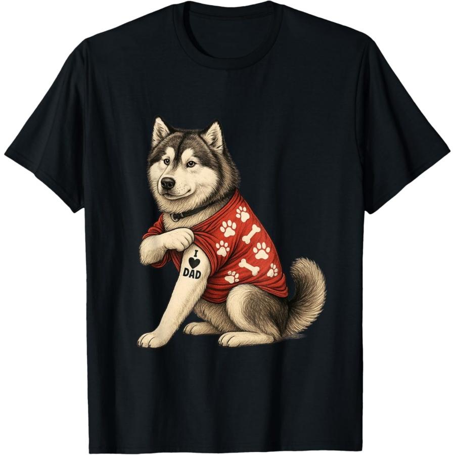 Funny I Love Dad Tattoo Alaskan Malamute Dad T-Shirt