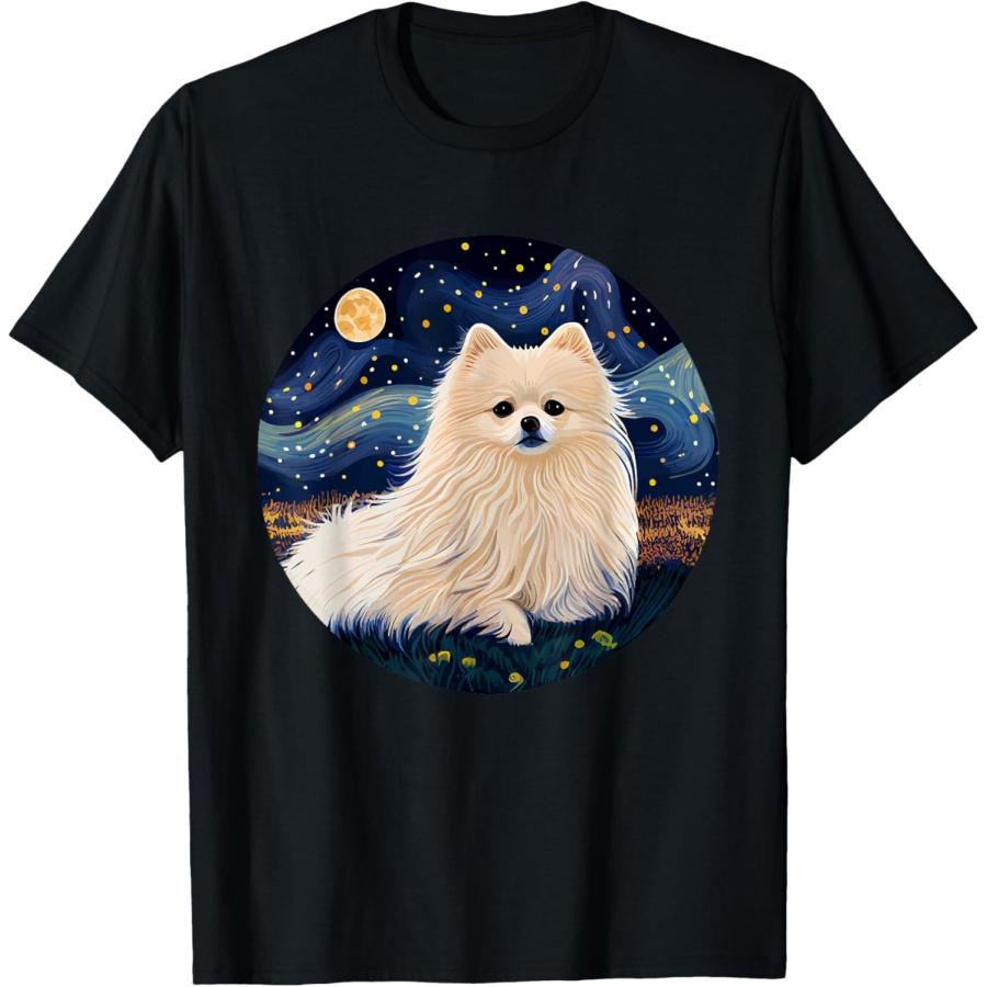 Funny Pomeranian White Starry Night Van Gogh Colorful Art T-Shirt