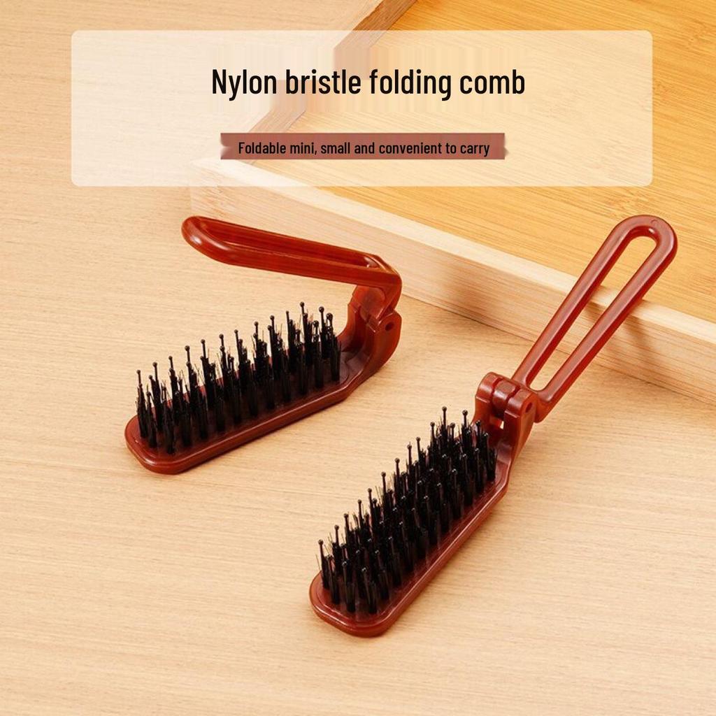 Portable Folding Boar Bristle Comb for Straight & Curly Hair - Unisex Travel Massage Comb