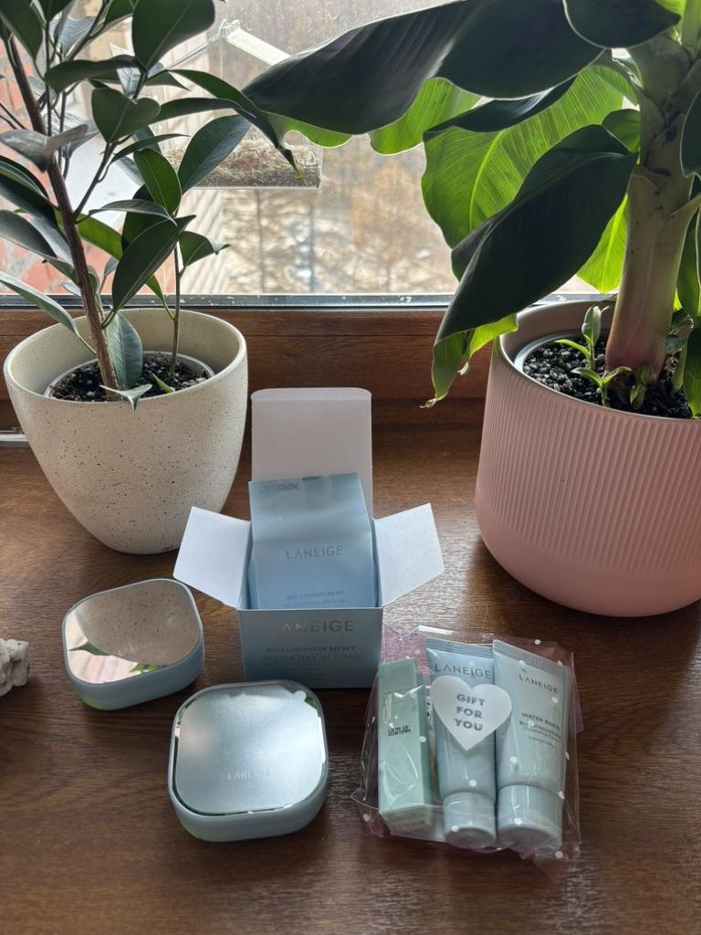 The Laneige Neo Cushion Mewy (often referred to as "Mui" in Korean) is a specialized addition to the famous Neo Cushion line, sitting perfectly between the Matte (Mint) and Glow (Pink) versions. It is designed to provide a "Matte meets Dewy" finish—offering a smooth, semi-matte surface while keeping the inner skin hydrated. This limited-edition style cushion features a unique top-surface mirror on the case for convenient touch-ups and is formulated with high-performance skincare ingredients to revitalize the skin condition upon application.