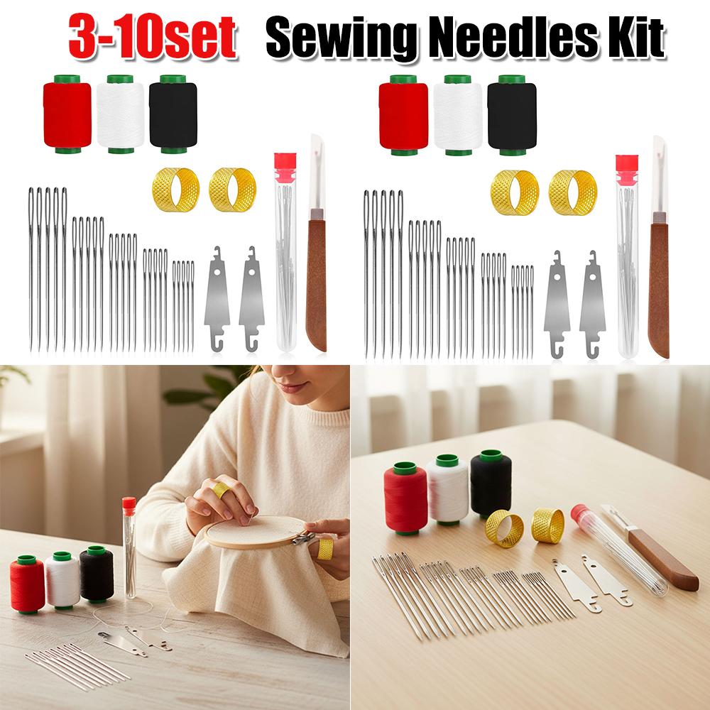 34PCS Big Eye Steel Sewing Needles Kit 5 Size Needles Stainless Steel Yarn Knitting Needle for Stitching and Crafting Project