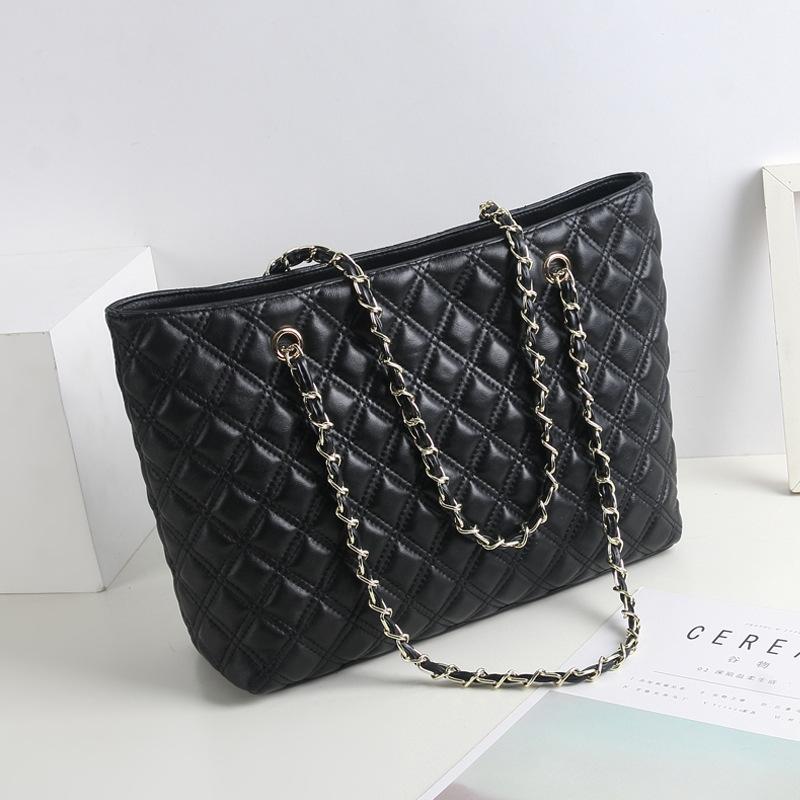 Casual Diamond Chain Large Bag Small Fragrant Style New Tote Bag Leather Fashion Versatile High Sense Portable Shoulder Bag