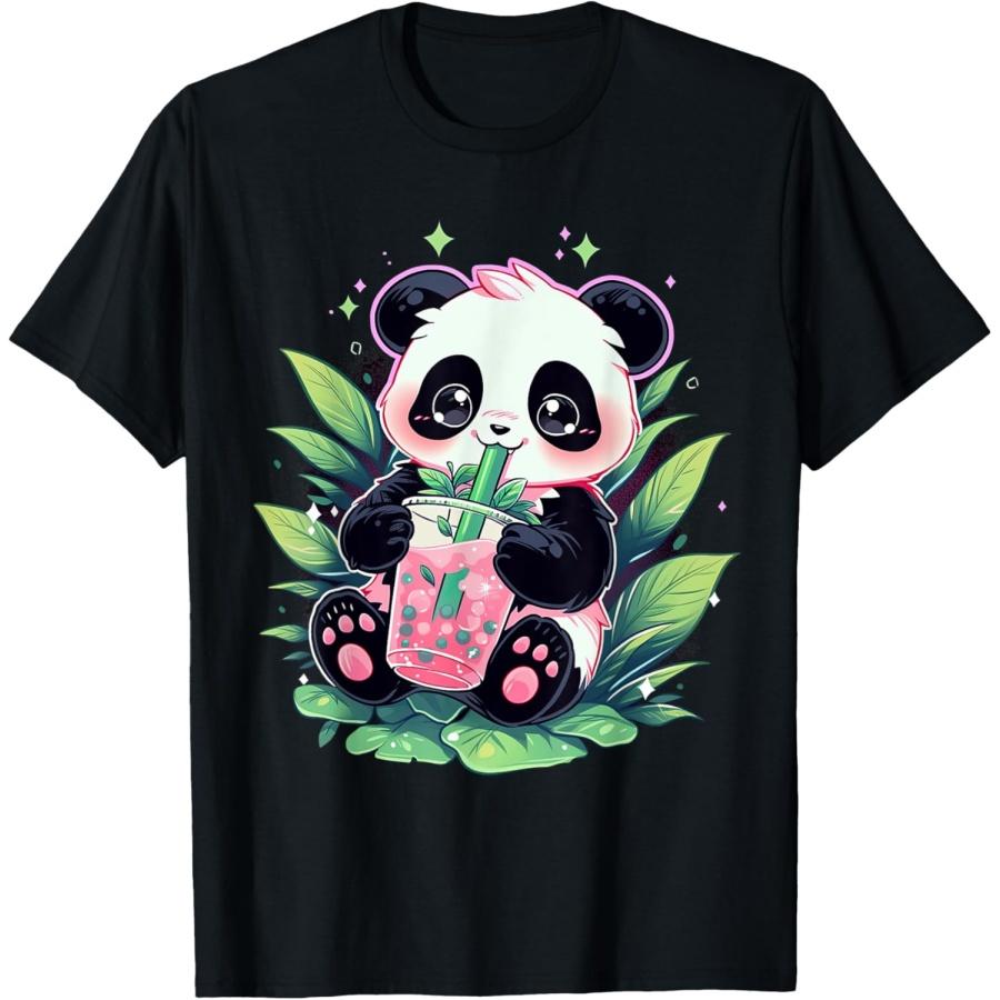 Cute Panda Drinking Bubble Tea Milk Anime Kawaii T-Shirt
