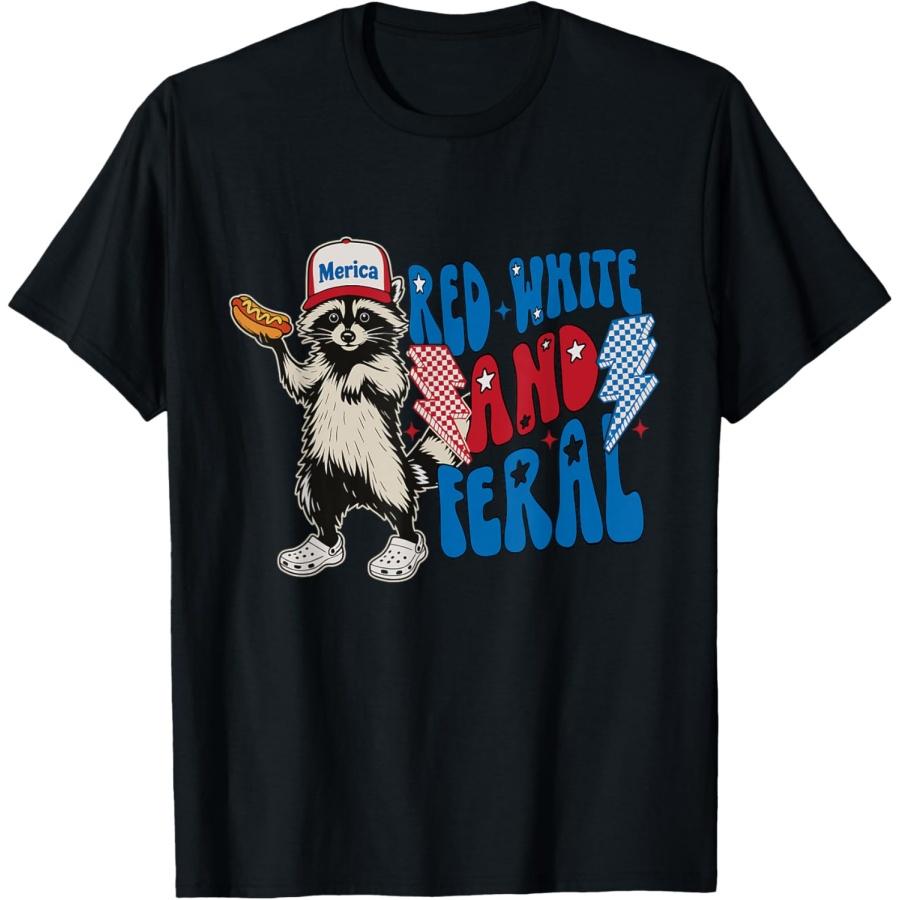 Red White And Feral Hot Dog Raccoon 4th Of July Trash Panda Men Women T-Shirt