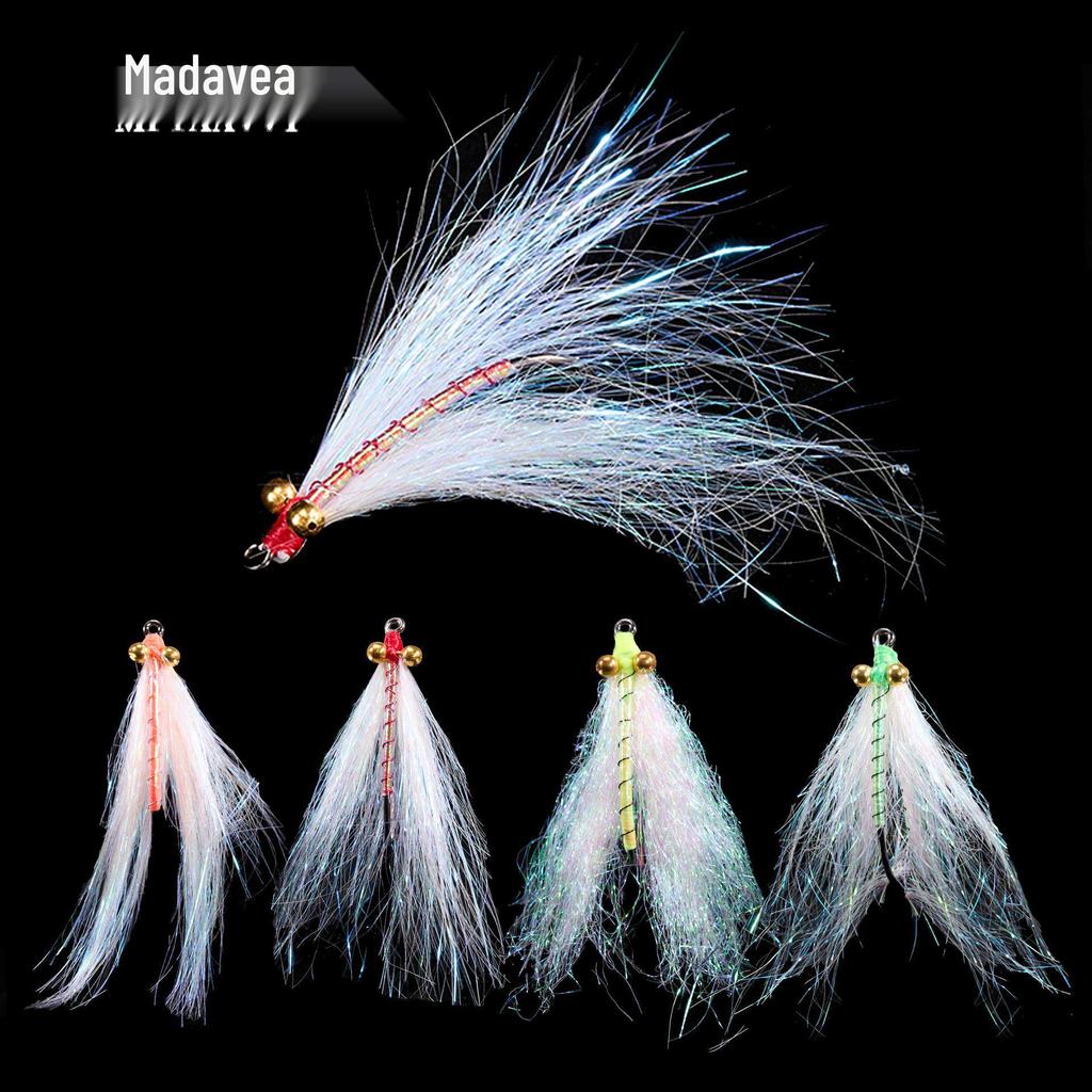 Ice Silk Shrimp Fishing Lure: Crazy Charlie Fly Hook with Sunflower Sequins, Red Tail, and Green Shoot for Bass and Mandarin Fish.