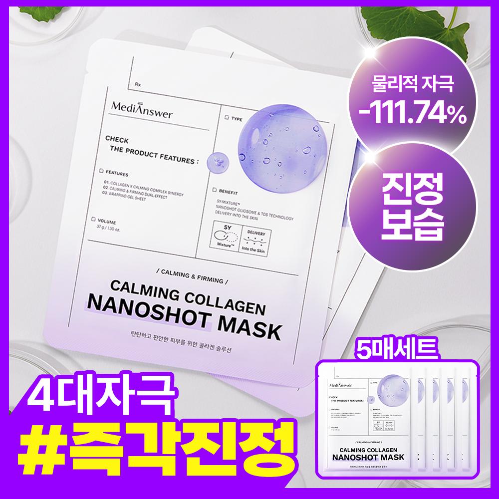 Medianser [Calming Moisture] Calming Collagen Nano Shot Mask 5 Sheets is a hydrogel sheet mask pack designed for sensitive and aging-prone skin. This mask contains azulene and patented calming ingredients (Stress Zero or Calming Complex) at 10,000ppm to provide a calming effect and reinforces the skin barrier with ceramides, cholesterol, and fatty acid components that compose skin lipids.