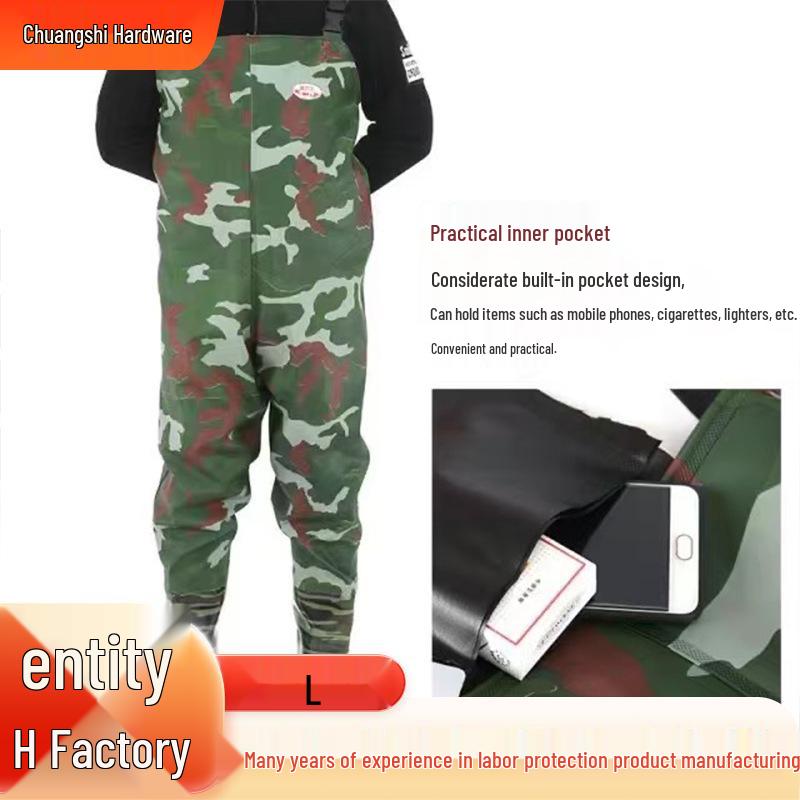 Men's One-Piece Wading Suit: Waterproof Thickened Pants with Integrated Rain Boots for Fishing