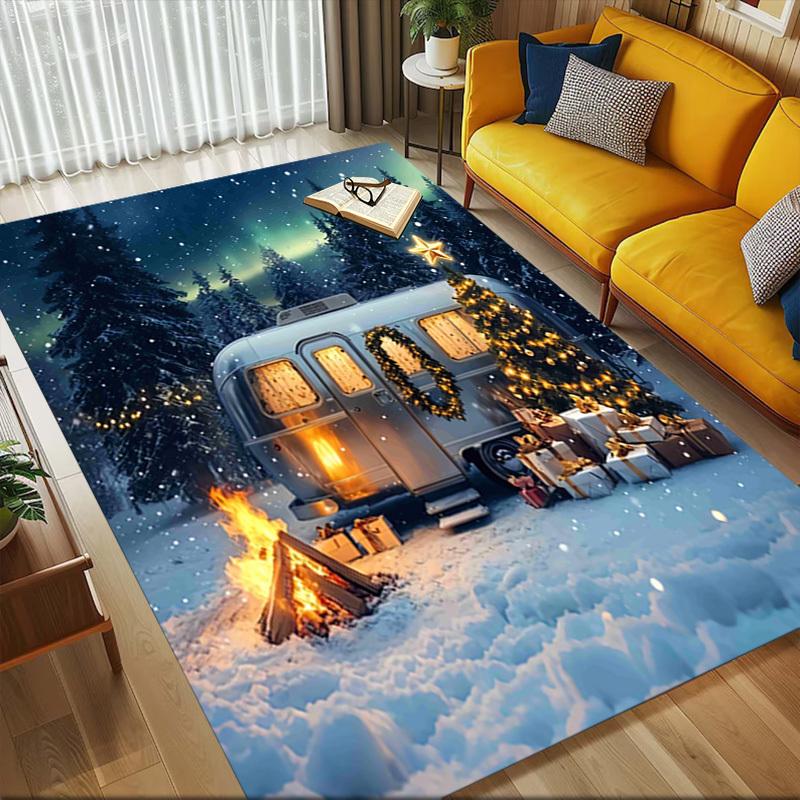 Camping Christmas Crystal Velvet Chair Mat Area Rug - Non-Slip, Floor Mat, Office Desk Chair Rugs, Bedroom Decor.Christmas Gift-1106009