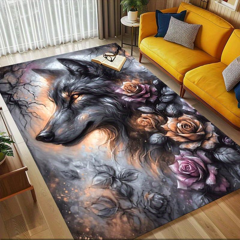 1pc Wolf Roses Themed Rug for Home Decor, Non-slip Office Carpet, Chair Mat, Outdoor Mat, Christmas and Halloween Gifts-0731127