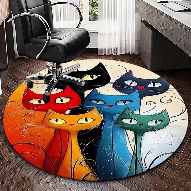1pc Colorful Cat Faces Round Carpet Anime Design Office Chair Mat, Non Slip Rug for Home Decor