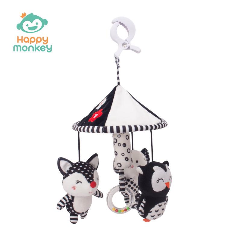 Happy Monkey Black & White Newborn Crib Mobile: Rotatable Wind Chime & Stroller Hanging Toy