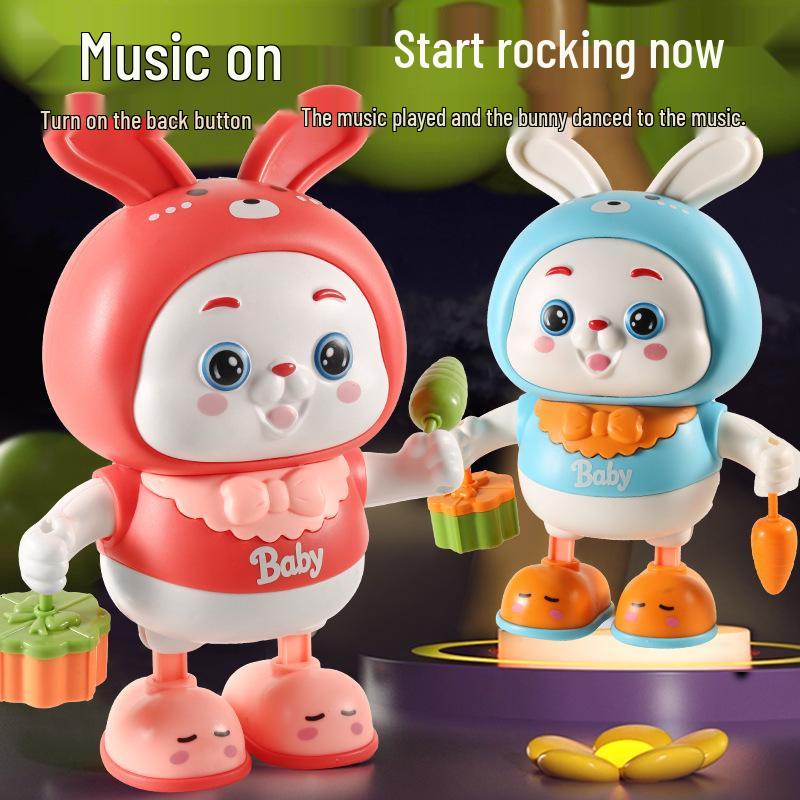 Electric Dancing Rabbit Toy for Babies: Encourages Head Lifting, Rolling, and Crawling with Sound and Movement.