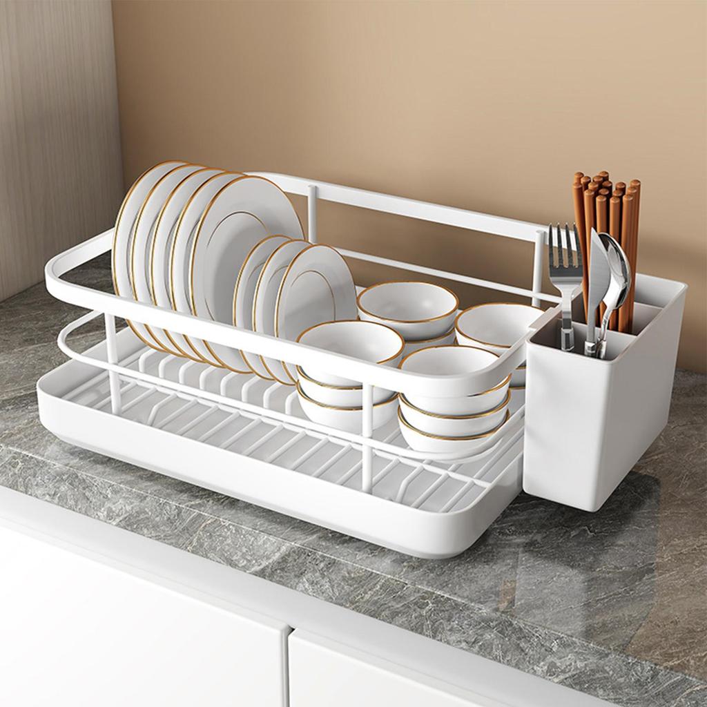 Dish Draining Rack Cutlery Rack with Drain Tray Cup Holder Cutlery Holder Kitchen Countertop Storage Rack Kitchen Accessories