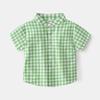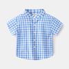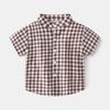 Summer Boys' Lapel Casual Short-Sleeved Top K-style Kids Fashion Small Gingham Baby Stand Collar Button Shirt