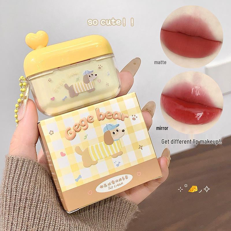 Gege Bear Double-Color Velvet Mist Lip Cream - Natural Bright Matte Finish for Autumn/Winter Moisturizing.