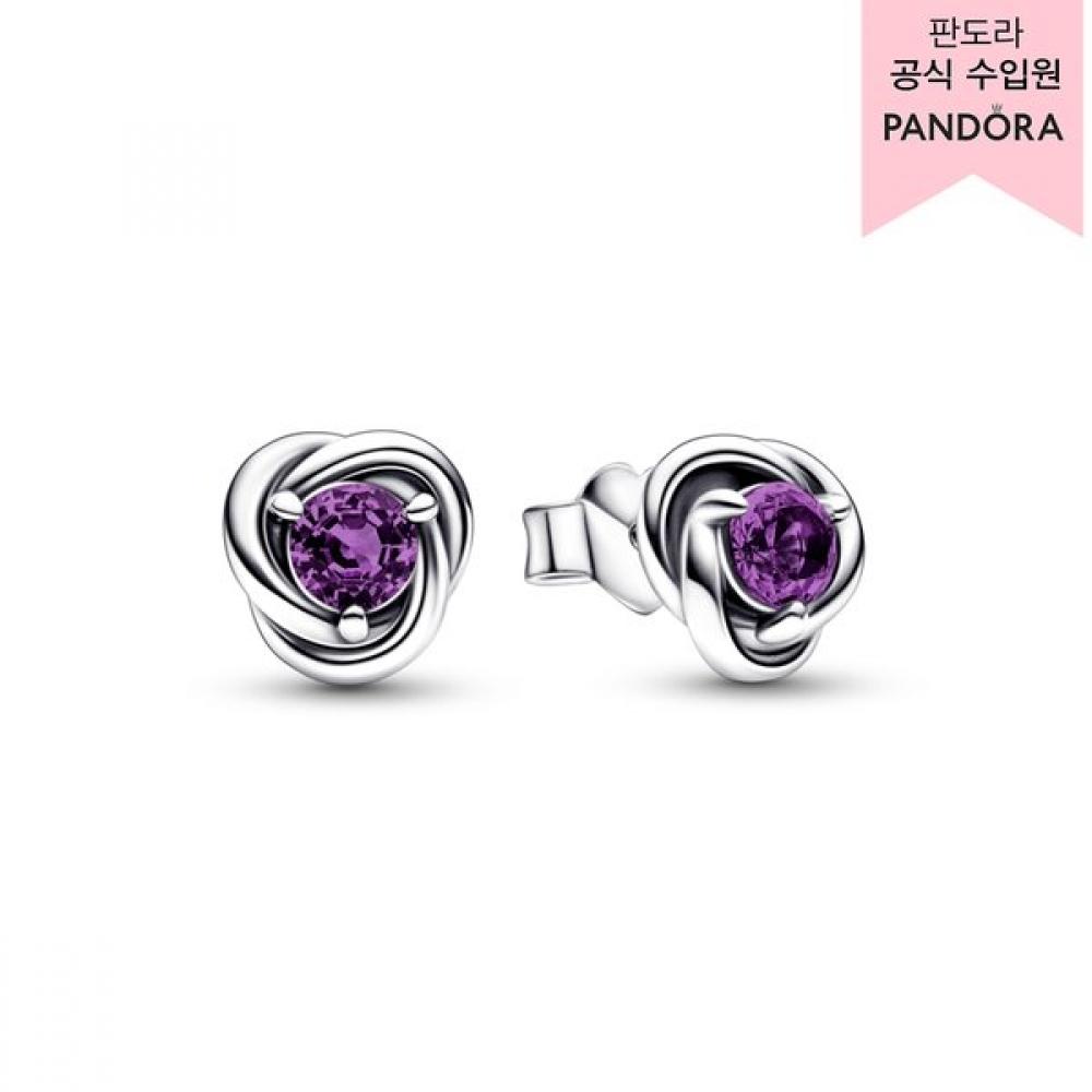 Pandora Purple Eternity Circle Stud Earrings (February) are stud earrings adorned with purple crystals symbolizing February's birthstone. These earrings are designed in an eternity circle shape, representing the symbol of infinity and emphasizing women's elegance.
