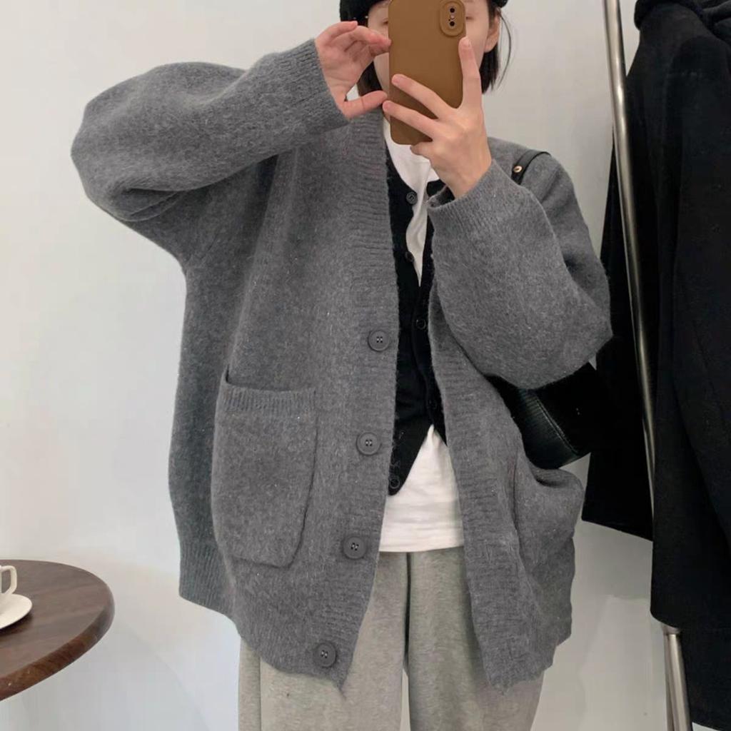 Lazy Wind Sweater Solid Color Coat Women's Outer Wear 2025 Autumn New Korean Version Loose Large Size Foreign Style Knitted Cardigan