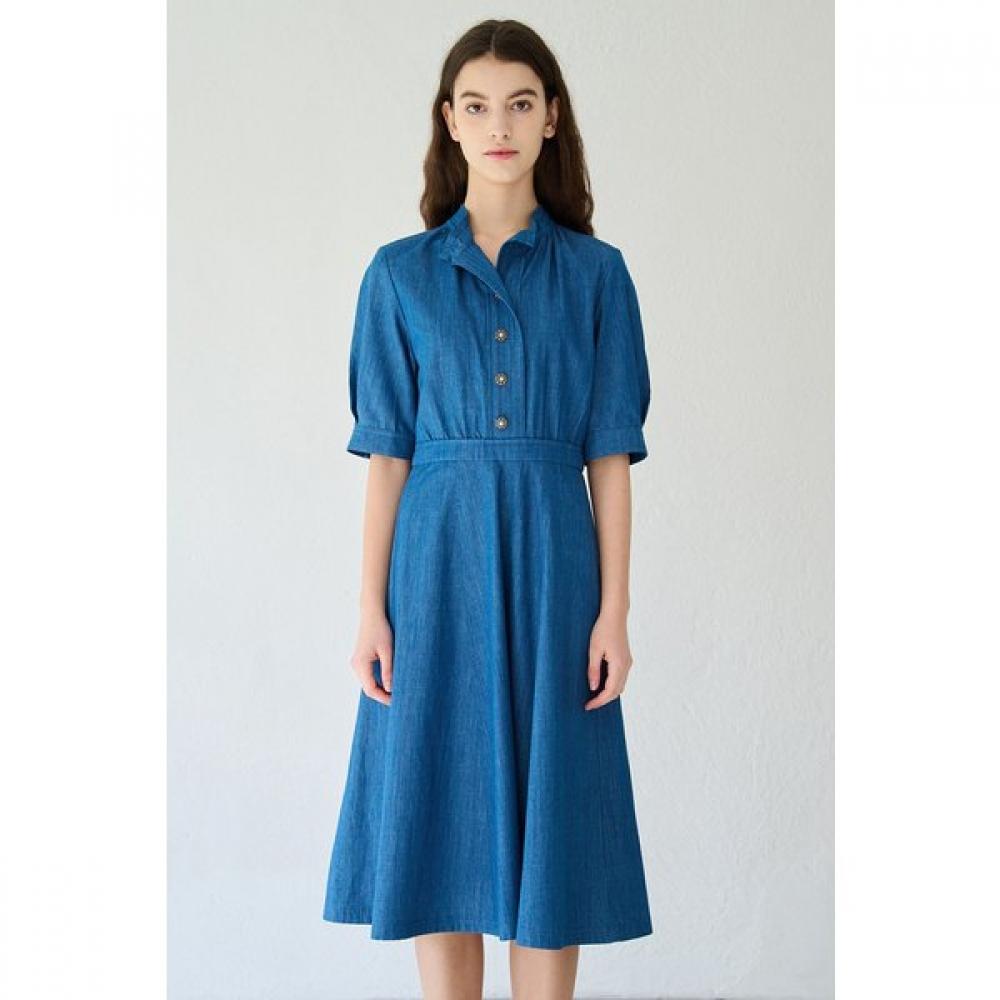 The Vintage Denim Dress B3M3O601 features a classic style harmonizing modern colors and silhouettes. This is a women's formal dress made from slub denim material that gives a cool and casual impression.