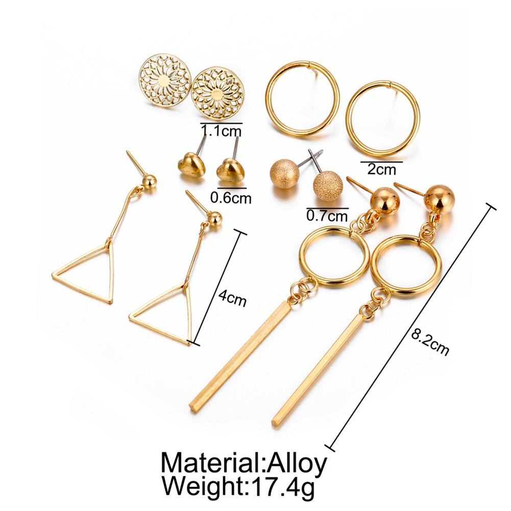 6 Pairs Women Fashion Hollow Out Geometry Fringed Ear Stud Set