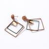Women Unique Frosted Square Double Layer Geometry Pendant Earrings