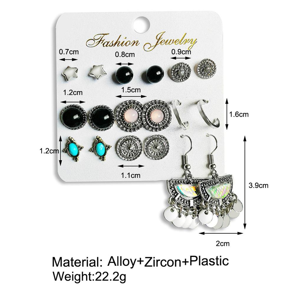 9Pairs/Set Women Retro Elegant Alloy Bright Fashion Earrings