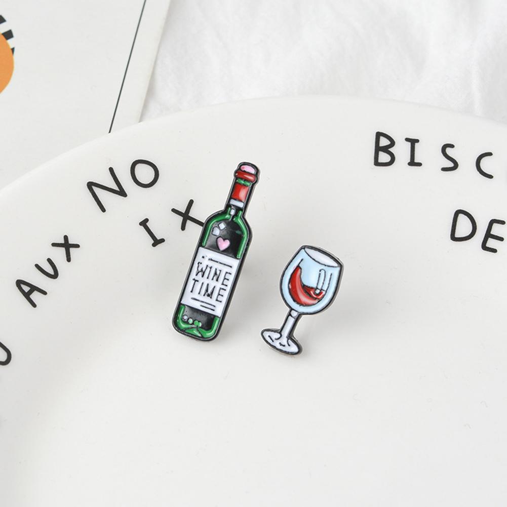 Mini Cute Wine Glass Wine Bottle Brooch Enamel Pin Fashion Badge For Lovers Friends