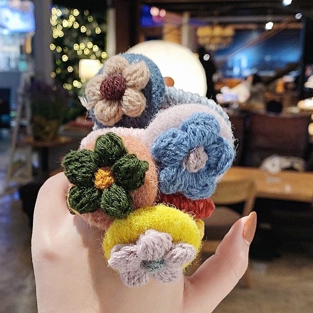 Handmade Crochet Flowers Hair Rope Band Woolen Head Decor Gifts for Woman