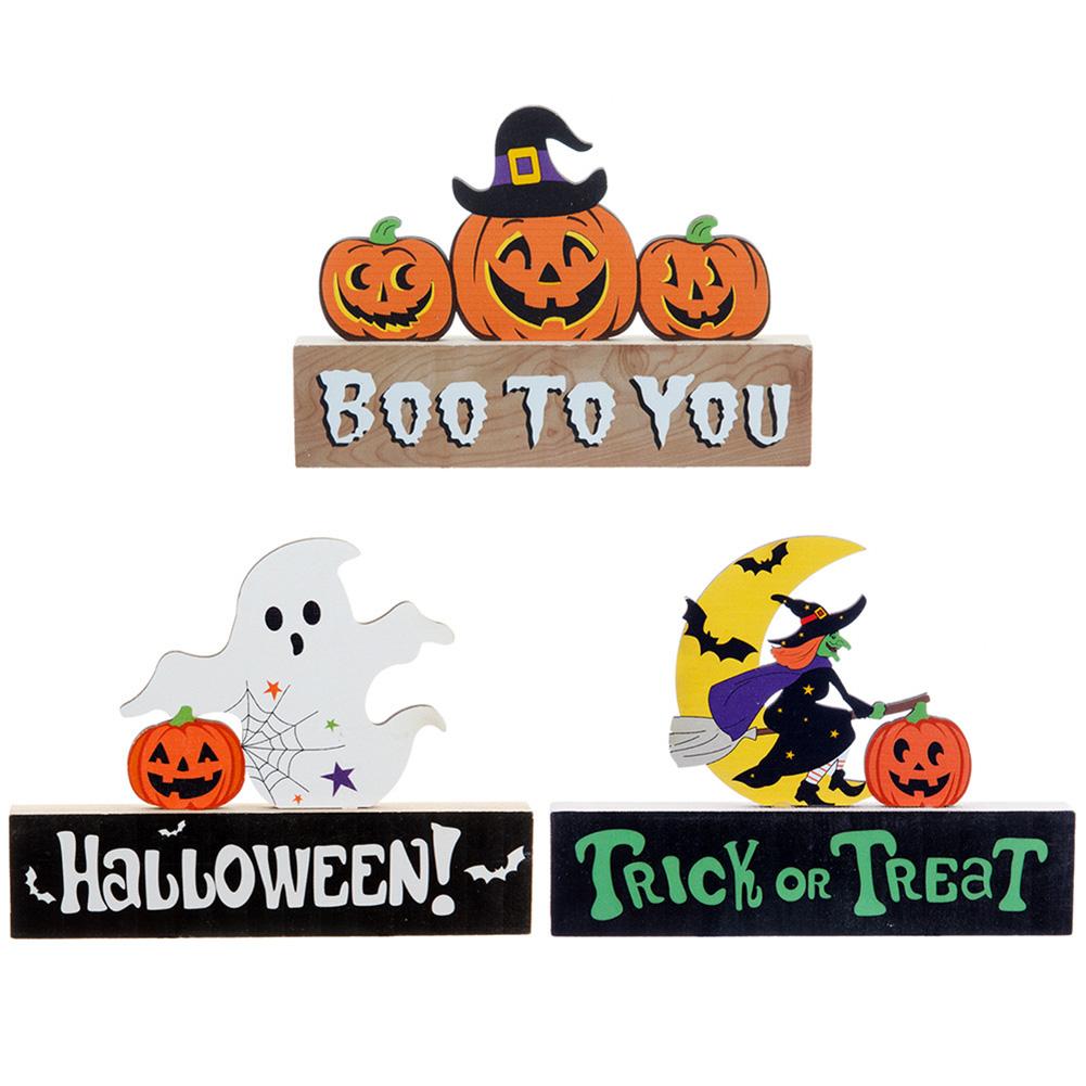 Halloween Table Decor Wooden Centerpiece Signs Happy Halloween Trick Or Treat Boo