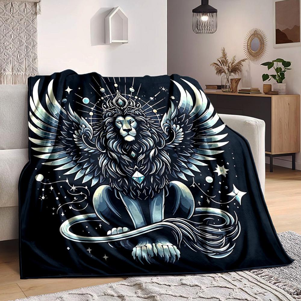 1pc Winged Lion Print Blanket Lightweight Flannel Throw Blanket For Sofa, Bed, Living Room, Office, Outdoor Travel, Camping